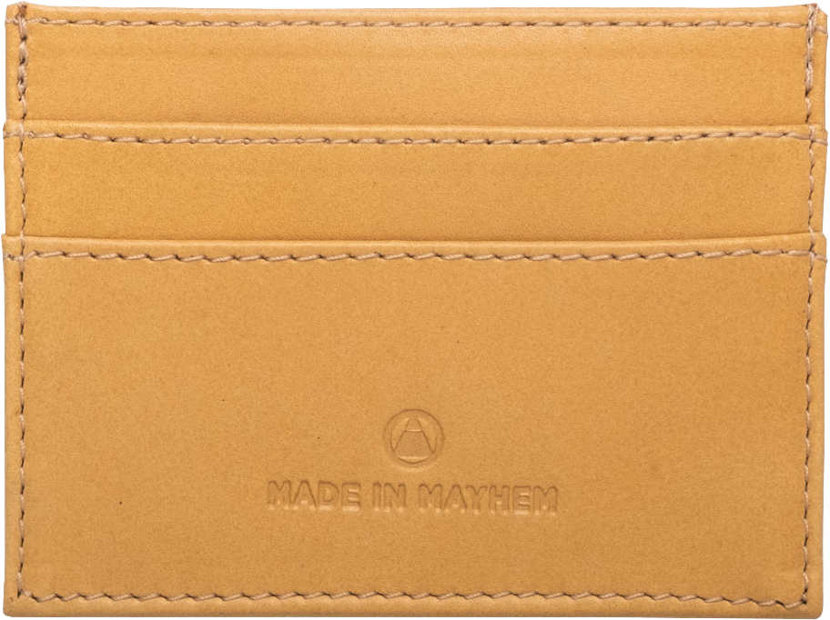 Our slimmest wallet now comes in a more classic format. This wallet has two pockets on the front and one on the back, with an additional hidden pocket inside the top edge for cash. This premium full grain calfskin leather has a natural smooth and glossy finish that will become smoother and slightly darker with time and wear.