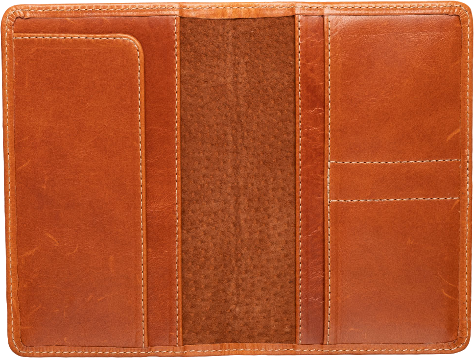 This travel wallet was designed with function in mind. Keep your cards, cash and passport organized while jet setting the globe. This premium Italian calfskin leather has a very smooth and matte wax finish. The leather will become smoother and slightly darker with time and wear. Back pocket can also be used for a small notebook.