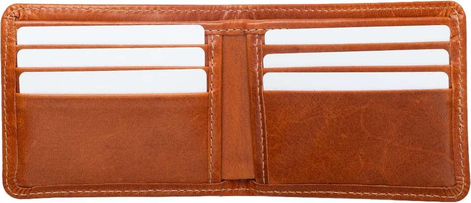This bifold lets you keep your finances organized in style. This is our most spacious wallet with 6 internal pockets and a long top pocket for cash. This wallet can fit one to three cards of each pocket and the top bill pocket is fully lined with suede. This rich Italian leather has a very smooth and buttery feel and will get a beautiful patina with time.